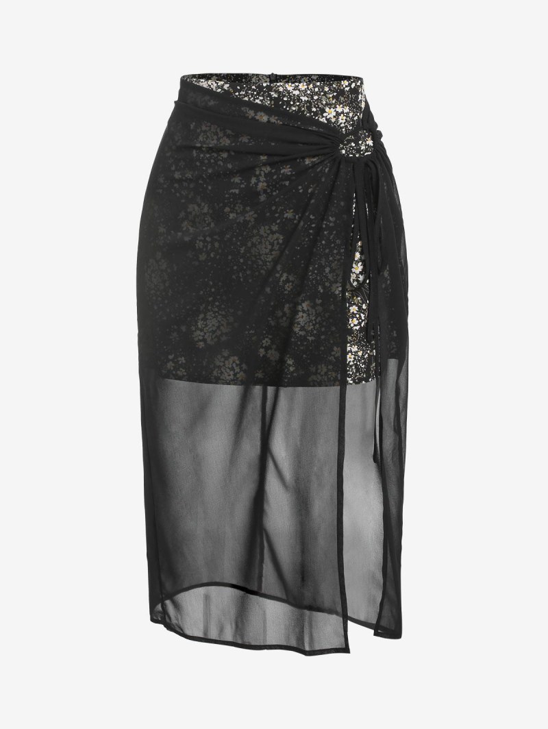Overlay Cinched Drawstring Tiny Floral Skirt