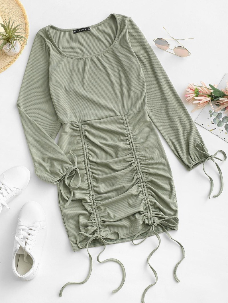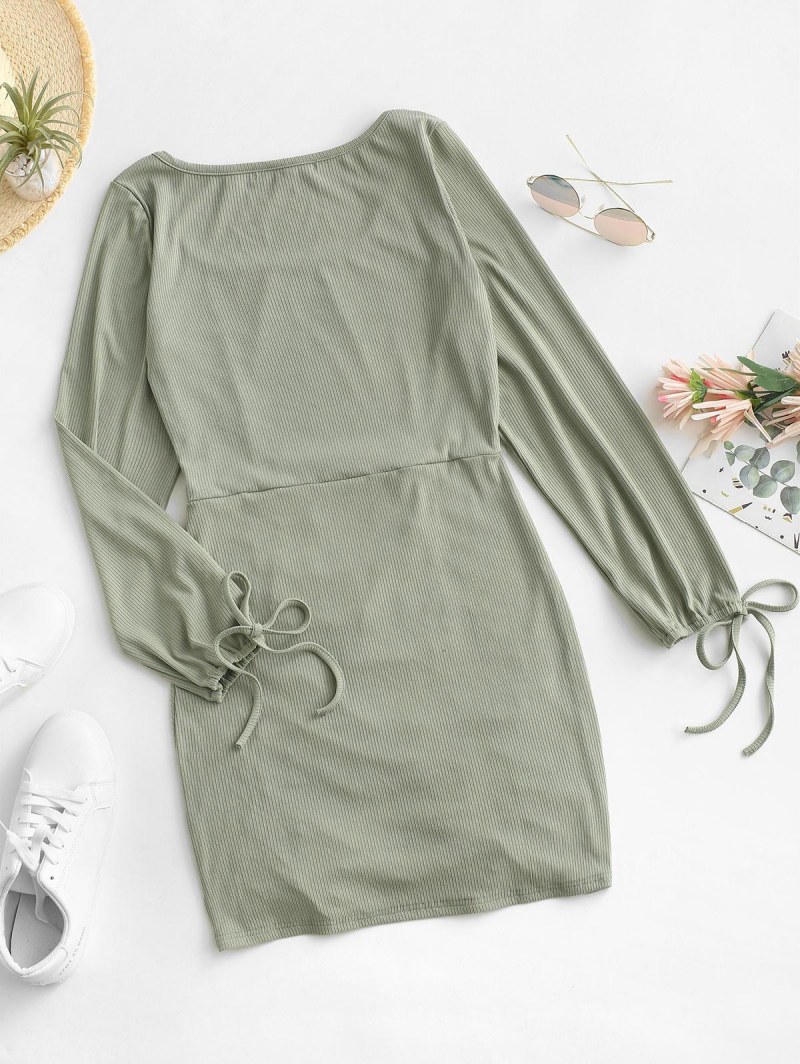 Tie Sleeve Ribbed Cinched Mini Dress