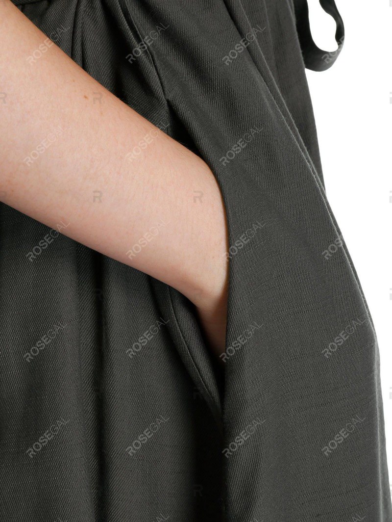 Short Sleeve Pleated Belted Casual Dress