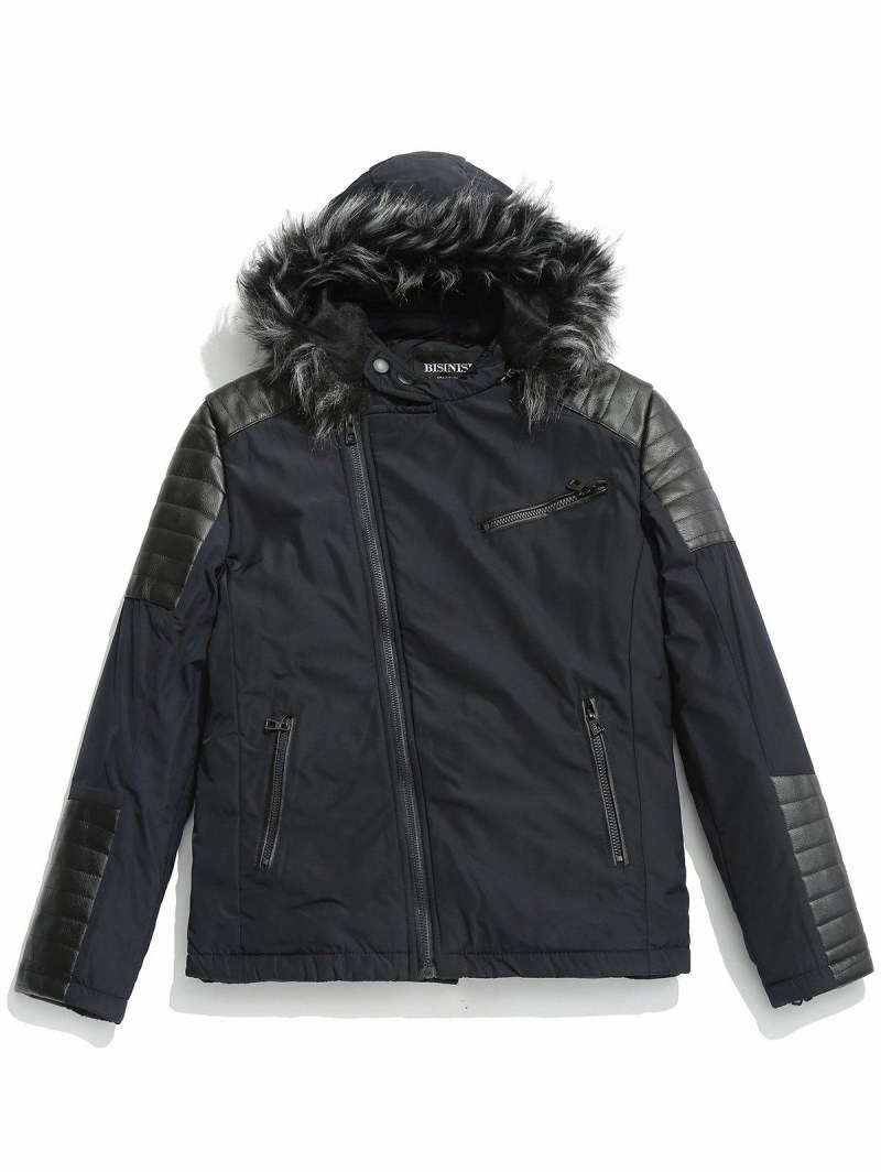 Faux Fur Hoodie Zipper Patchwork Parka Coat