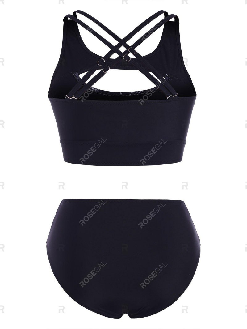 Criss Cross Cutout Octopus Print Tankini Swimwear