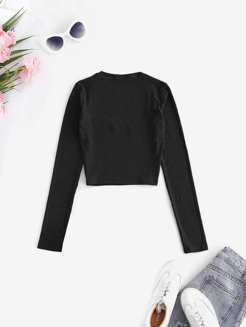 U Neck Ribbed Long Sleeve Top