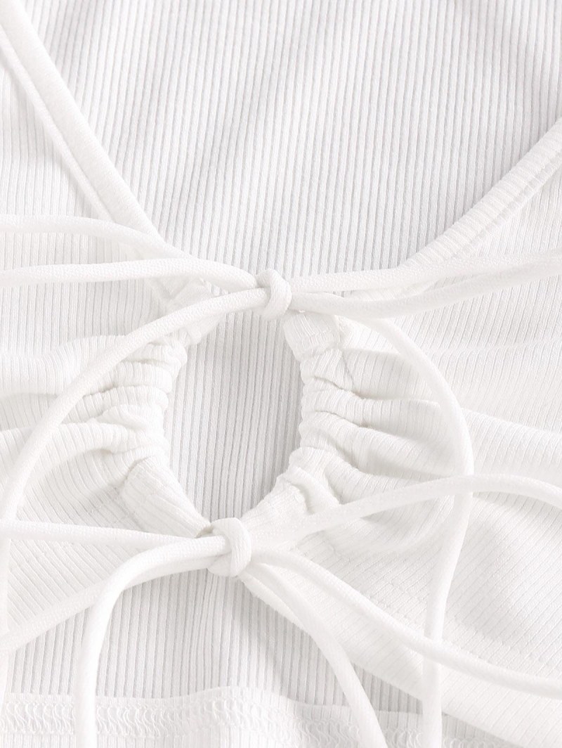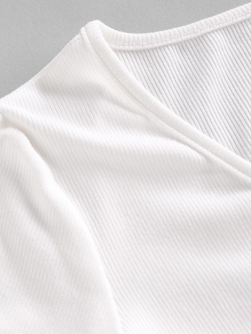Ribbed Tie Front Crop T Shirt