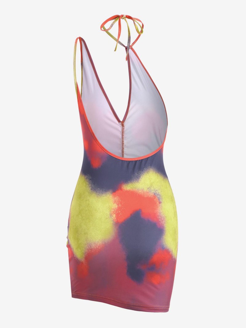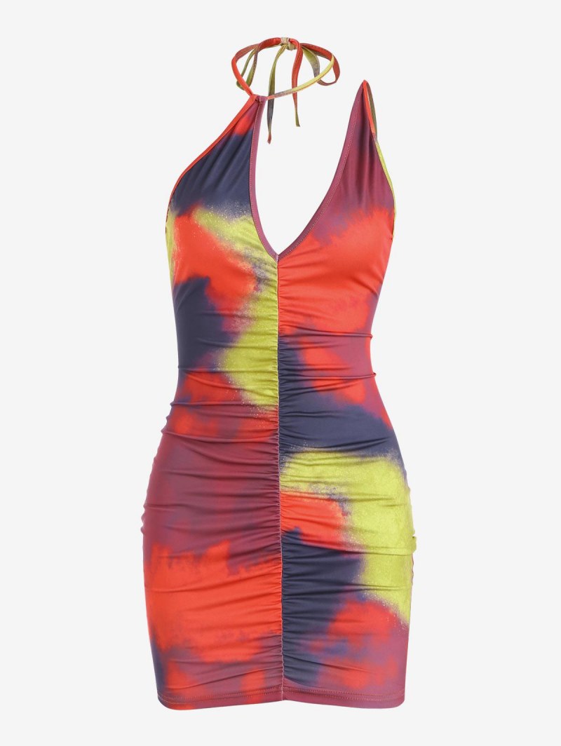 Tie Dye Ruched Mini Bodycon Dress