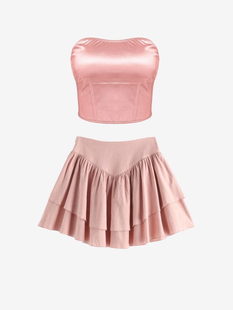 Satin Bandeau Layered Skirt Set